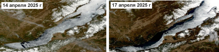 On April 10, open water areas began to appear from the Angara`s source to Buguldeyka settlement. A significant reduction in ice cover was from April 14 to 18, when the ice moved from Kultuk settlement to the northern top end of Olkhon Island and along the western coast farther Olkhon Island. In Listvyanka, an automated underwater hydrophysical station records the water`s temperature of 2-2.4 °C at a depth of 4 meters. Water often warms by more than 2 degrees between late April and early May. This large-scale event, which typically occurs in early May, has occurred for the first time since 2000, according to an analysis of satellite image data.