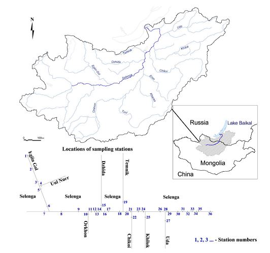 Пробы воды отбирали батометром Нискина с глубин до 10 м. Из Братского водохранилища отобрано 9 проб, включая притоки р. Ока и Ия, из Усть-Илимского водохранилища – 9 проб, из Богучанского водохранилища – 8 проб. Общее количество проб составило 26. Прозрачность воды определяли диском Секки, температуру воды и рН полевым прибором в момент отбора проб. Пробы воды были сконцентрированы на фильтры для последующего исследования образцов с помощью сканирующей электронной микроскопии, отфильтрованы и зафиксированы для количественного анализа состава фитопланктона с помощью световой микроскопии и осаждены на фильтры для последующего выделения ДНК и проведения метабаркодинга микроэукариот, а также заморожены для гидрохимического анализа состава биогенов.