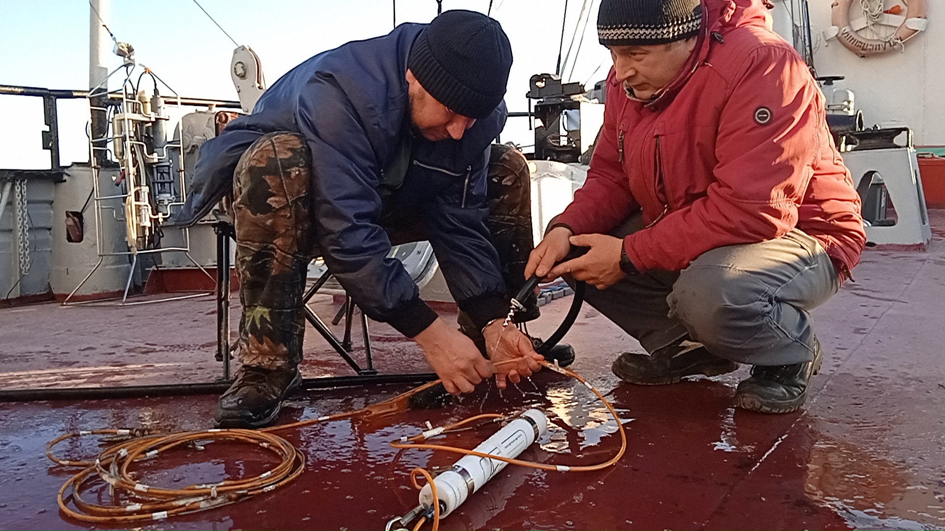 • подняты с глубин 12 и 30 метров опытные автономные регистраторы с термокосами (измеряющими вертикальное распределение температуры) на склоне в районе нейтринного телескопа (106 км КБЖД). После считывания данных и замены элементов питания регистраторы были вновь установлены до марта 2026 года
