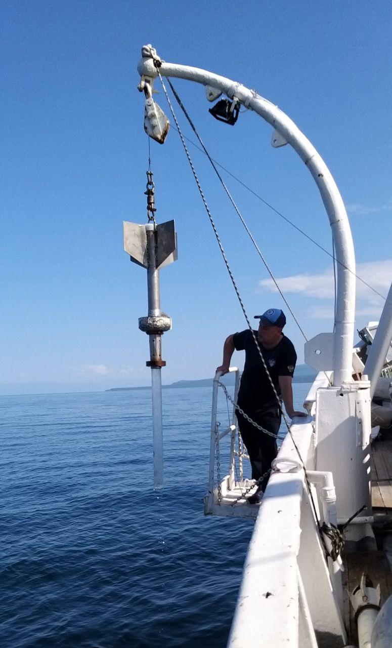 Fieldwork in Barguzin Bay was carried out as part of the development of non-contact methods for assessing zooplankton reserves. For this purpose, night- and daytime acoustic surveys of a local area were carried out, and net catches were controlled in parallel. The obtained data will be processed, allowing the estimation of the equation coefficients for the relationship between the distribution density of zooplankton and the volume of acoustic scattering.
