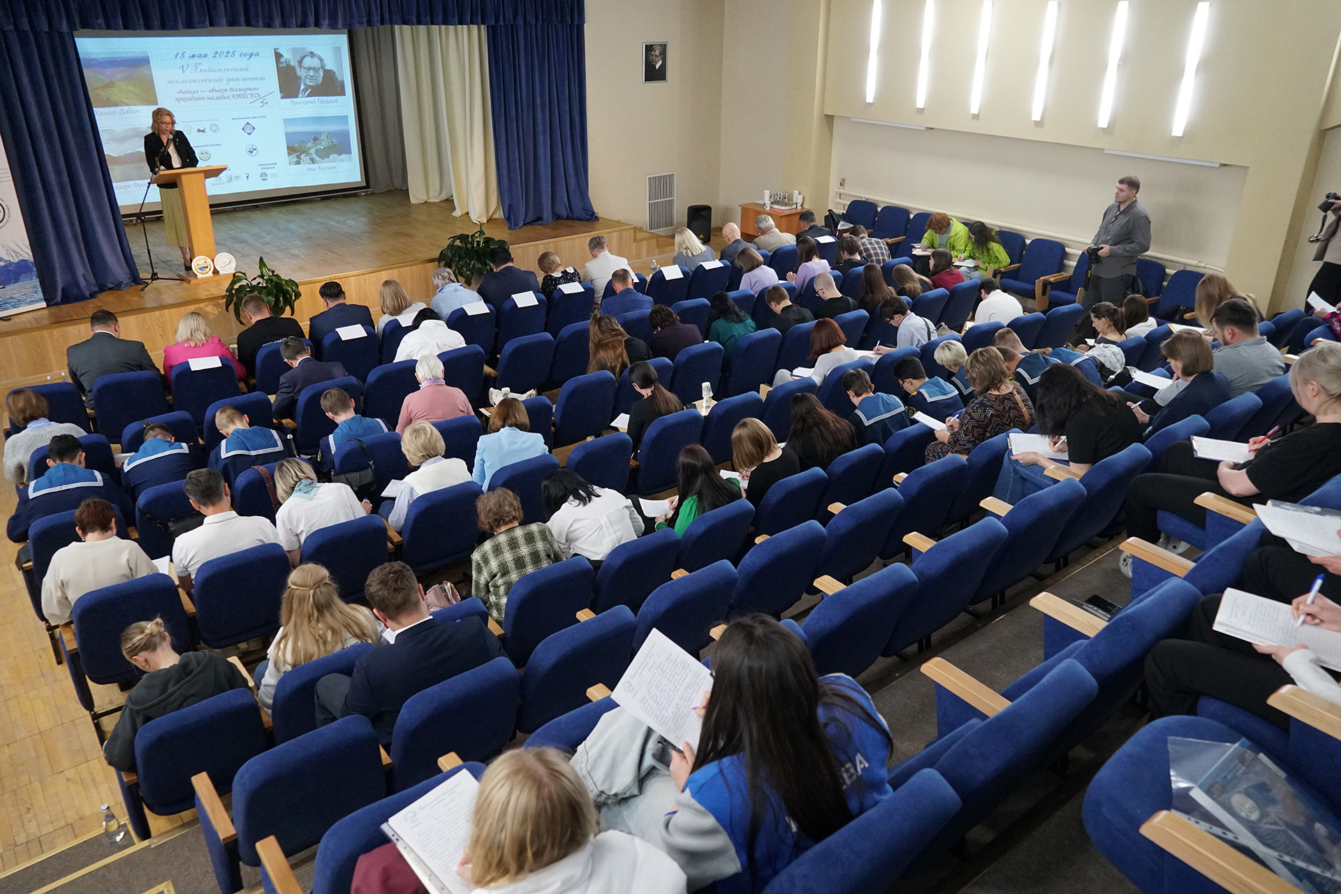 The V Baikal ecological dictation was held on May 15, 2025, in honor of the Year of Defender of the Fatherland and the 80th anniversary of Victory in the Great Patriotic War. There was a livestream from LIN SB RAS. With 10,250 participants from 33 locations, including new Russian territories, the V Baikal ecological dictation became the largest in the project`s history by coverage and a record by number of regions joined.