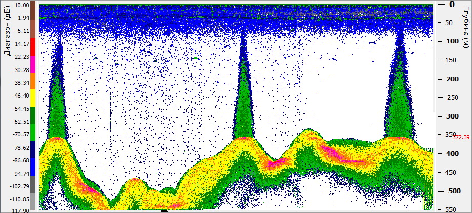При помощи гидроакустического комплекса был обследован выход газа в Среднем Байкале, найденный сотрудниками лаборатории геологии оз. Байкал ЛИН СО РАН. Особенность данного сипа состоит в том, что он расположен на границе зоны стабильности газовых гидратов, и у его подножья находятся газовые гидраты в поверхностных донных осадках. Была выполнена гидроакустическая съемка и оценка потока газа из данного выхода.