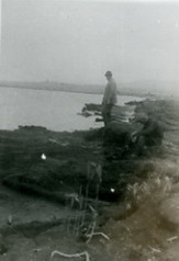 Дружную компанию своих спутников К.И. Мейер подобрал еще в Москве. Это были: Владимир Иванович Жадин, начинающий зоолог, вскоре опубликовавший популярный очерк об этой экспедиции, недавно окончившие университет гидрологи Анатолий Петрович Щербаков и Сергей Иванович КузнецовВ, не замедливший со своим научным отчетом о проделанной в экспедиции работе. Сзади на фото - РИС. 22 Анатолий Анатольевич Махотин, аспирант кафедры Сравнительной Анатомии МГУ. Все они, не имея привычки к сибирскому "гнусу" с детства, сильно от него страдали (как и от "морской болезни" порой), но не унывали. В районе губы Хакусы внимание привлекали, как и на Котельниковском мысу, горячие источники. Поднялись вдоль такого горячего ручья вверх до лощины и там…Вот как это описал В.И. Жадин "…нагибаюсь, осматриваю камни. Радость - на камнях множество улиток, в воде личинки насекомых, жуки, клещи, пауки! На вате водорослей прыгают бескрылые насекомые. Лихорадочно отправляю находки в баночки со спиртом - новые виды, сорта животных, никем еще не виданные!" Очевидно, этот момент запечатлел К.И. Мейер на фото (в белой фуражке В.И. Жадин).